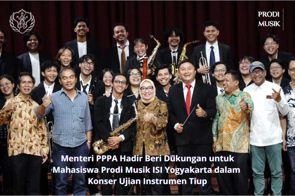 Luaran PembelajaranAdmin2025-12-31T07:35:38+07:00 LUARAN PEMBELAJARAN Forum IlmiahSeminar dan Konferensi International Conference Performing Arts and Social Studies (ICOMPASS) 2025 Seminar "Ngelmu Pring" Kegiatan KemasyarakatanMagang; Studi Orientasi Profesi; Pengabdian kepada Masyarakat Studi Orientasi Profesi di SD Bopkri Gondolayu Studi Orientasi Profesi di SMKN 2 Kasihan Bantul (Sekolah Menengah Musik Yogyakarta) Studi Orientasi Profesi di RRI Jakarta Studi Orientasi Profesi di SMKN 2 Cibinong (SMM Cibinong) Program Pembinaan dan Pengembangan Wilayah Seni (P3WilSen) di Kalurahan Sorosutan, Umbulharjo, Kota Yogyakarta Magang MBKM di SMKN 11 Medan (Sekolah Menengah Musik Medan) Konser Hasil Pembelajaran Mata Kuliah AnsambelDokumentasi penampilan dalam Konser Hasil Pembelajaran Mata Kuliah Ansambel Konser Hasil Pembelajaran Ansambel Vokal bertajuk 'ETERNA' Konser Hasil Pembelajaran Ansambel Tiup Konser Ujian Ansambel Tiup Dihadiri oleh Menteri PPPA Ibu Arifatul Choiri Fauzi Konser Hasil Pembelajaran Ansambel Gitar